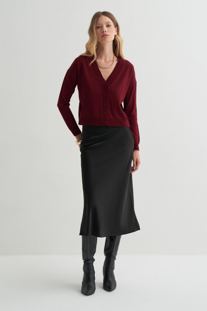 Serena Dokulu Hırka, detaylardaki zarafetiyle dikkat çeker. Trikonun yumuşak dokusuna işlenen ince desenler, hem gündelik kullanımda hem de özel anlarda stilinizi güçlendirir. Bu hırka, sade şıklığı sevenlerin gardırobunda uzun yıllar kendine yer bulacak özel bir parçadır.